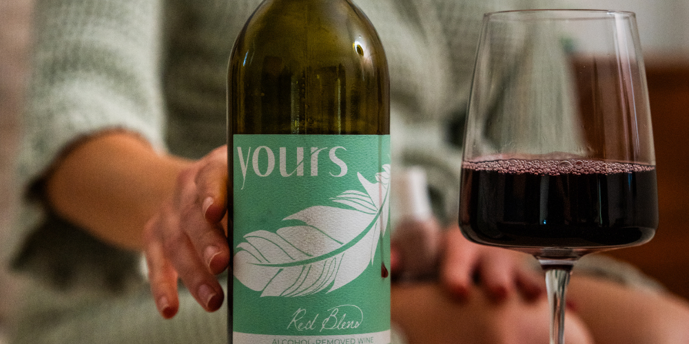 YOURS begins its life as any other great wine...grapes on a vine. Once picked, crushed, and aged into a fine wine, YOURS undergoes an advanced dealcoholization process that removes nearly all traces of alcohol, but keeps the robust flavor and texture of the original wine.
